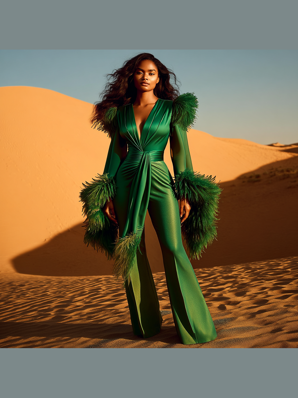 Rule the moment in High Reign, the statement jumpsuit that embodies power, confidence, and unapologetic glamour. Designed with bold, sculpted shoulders and lavish feather accents, this piece is engineered to make an unforgettable entrance.